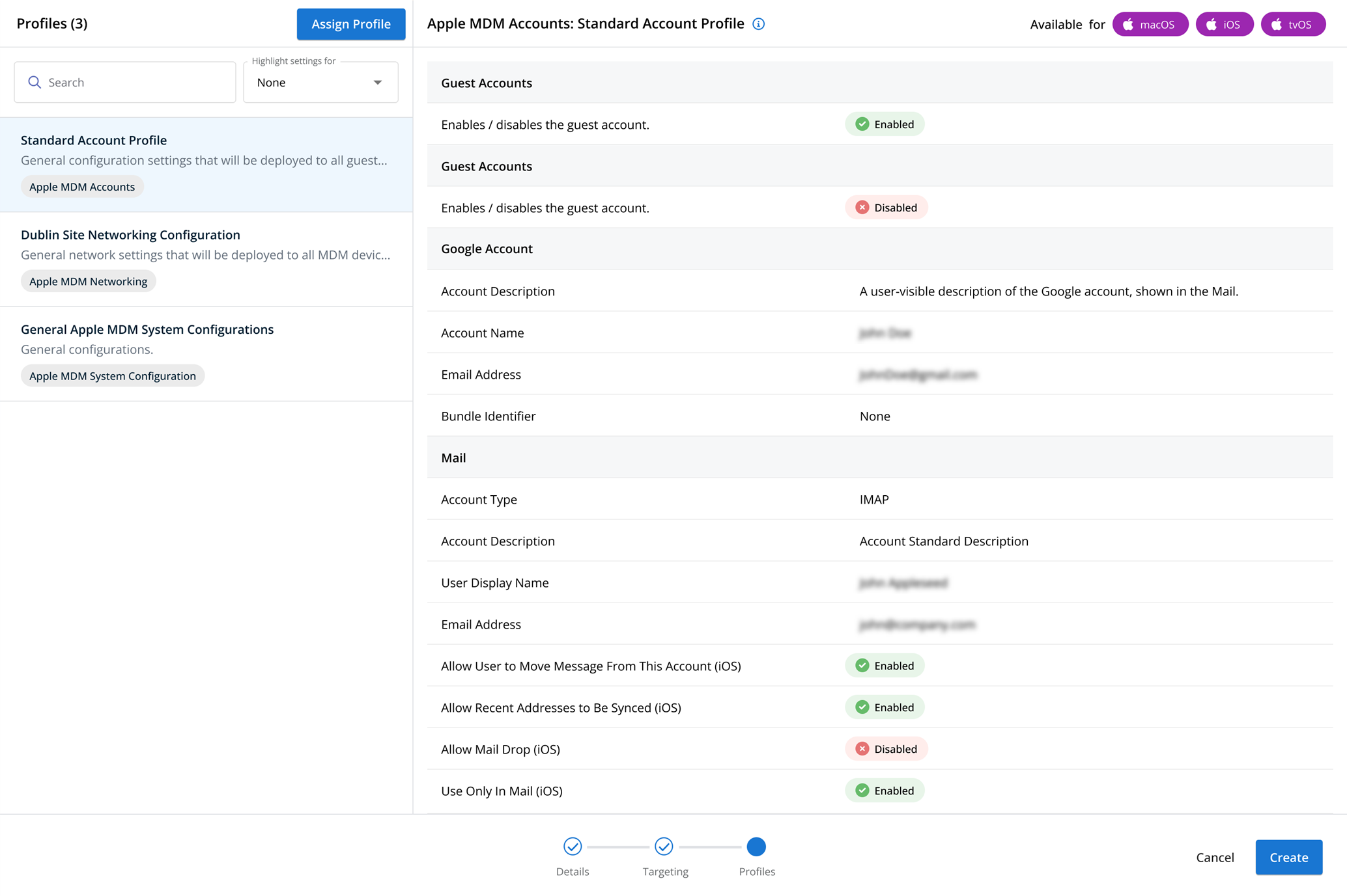 With MDM configuration profiles, you have the ability to automate the setup of mobile device user accounts, networking settings, security policies, and hardware, operating system, and application restrictions from the moment the device is enrolled. This powerful feature eliminates the need for administrators to manually onboard every MDM endpoint in your environment, saving you time and ensuring that all devices are configured consistently.